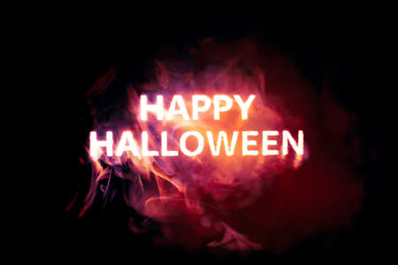 Glowing Happy Halloween text burning red, orange, and purple smoke