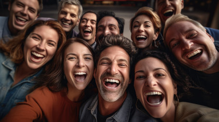 Diverse group of people happily laughing together, symbolizing the power of social connections and online communities.