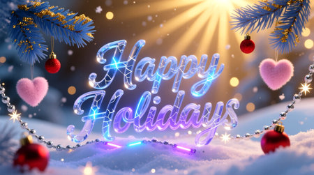 A beautifully presented 'Happy Holidays' sign set against a sparkling backdrop. The background is not transparent, creating a festive atmosphere.