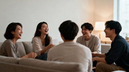 a multicultural gang of jovial pals from Asia. GENERATE AI