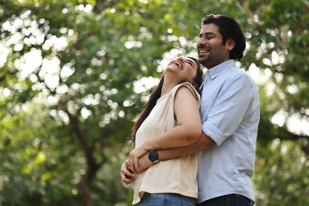 Portrait of young indian couple embracing each other in the park