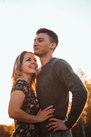 Happy young couple spending time together outdoors. dating agency