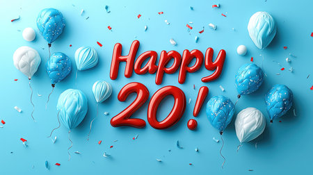 20th birthday celebration with confetti and ribbons. Vector illustration