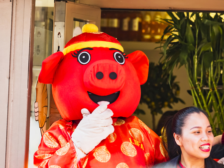 PARIS, FRANCE - FEBRUARY 17, 2019. Last day of the chinese new year celebration festival in street. Pig in the street and in the parade