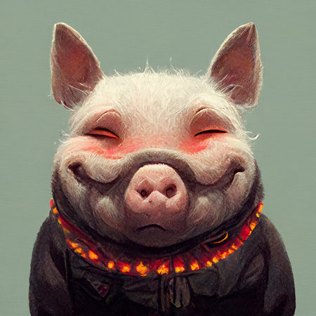 Pink pig wearing clothes, fat and smiling portrait, ai generated - creative illustration