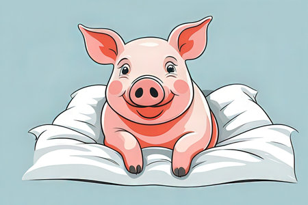 Cute cartoon pig in bed. Vector illustration for your design.