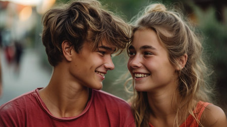 Close Up of Young Smiling at Each Other generated by AI