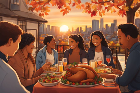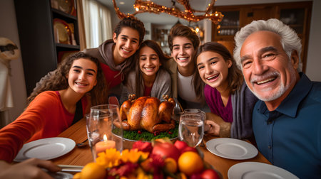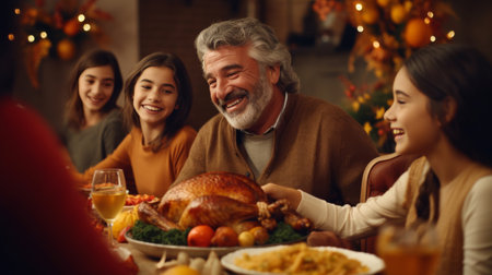 loving family enjoy thanksgiving lunch at the table illustration generative ai art