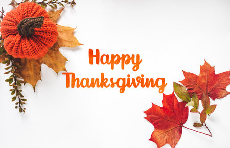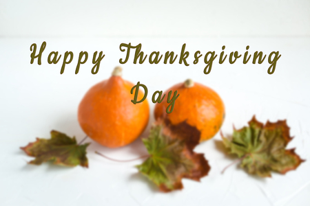 Happy Thanksgiving Day with pumpkin and maple leaves
