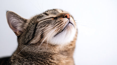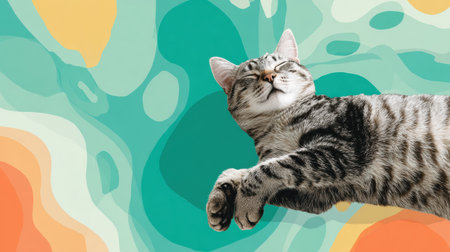 Content tabby cat with eyes closed, resting on a vibrant background, expressing peace, relaxation, and cozy pet vibes.