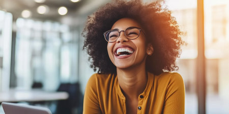 Close-Up of a Diverse Woman's Laughter in Office