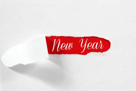 torn paper with word new year