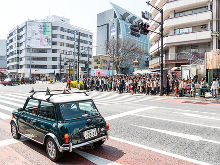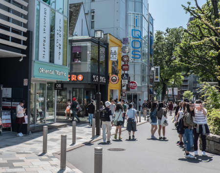 Tokyo, Japan - 20 April, 2019: People walking in Shibuya. The area is of of most bustling of Tokyo and hosts a commercial and business center.