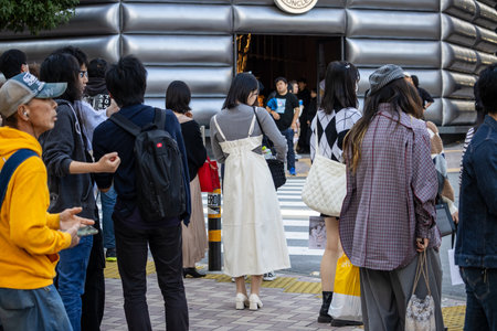 Tokyo, Japan, October 29, 2023: People queuing outside a popular store in a Tokyo shopping district