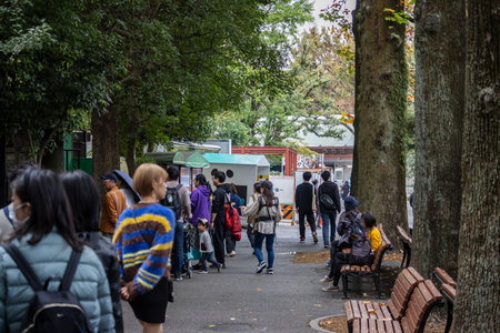 Tokyo, Japan, October 31, 2023: Visitors walking in Ueno Park