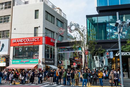 TOKYO,JAPAN - NOVEMBER 18, 2019: People visit Takeshita street in Harajuku in Tokyo Japan.This place is destination for teenager lifestyle in Tokyo.