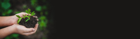 Hand for planting trees back to the forest, Creating awareness for love wild, Wild plant concept.