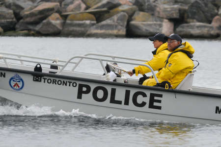 Water police patrol the perimeter during the 70th annual Canadian International Air Show (CIAS) over Lake Ontario in Toronto, ON, Canada on September 1, 2019