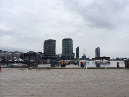 Melbourne Australia - March 11 2020; city commercial skyline from Docklands district.