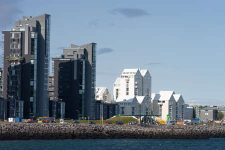 REYKJAVIK, ICELAND - JUNE 10, 2016: Panoramic skyline view from the harbor, in Reykjavik, Iceland