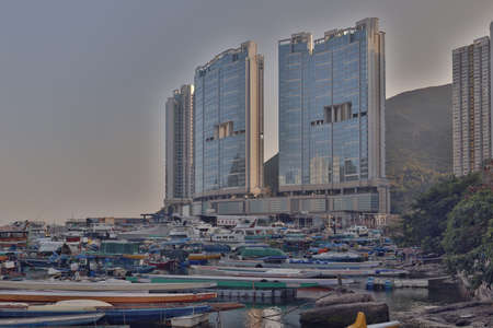 Kwai chung, Hong Kong 12 February 2019: Hong Kong city sunset