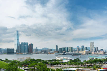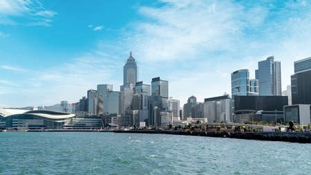 Skyline of Victoria harbor of Hong Kong city