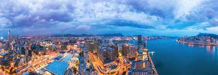 Hong Kong 10 September 2019: Drone fly over Hong Kong city