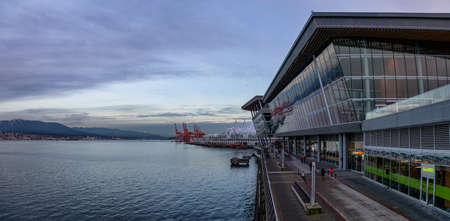 Downtown Vancouver, British Columbia, Canada - December 31, 2018: Panoramic view of Vancouver Convention Centre during New Years Eve.