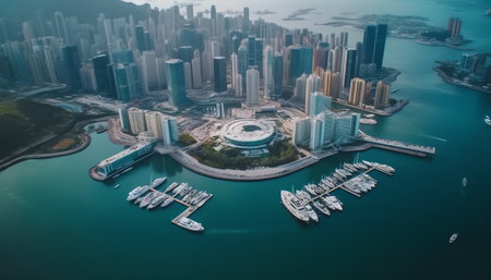 Generative AI : Aerial view of sailing boats during the day at Hong Kong bay China
