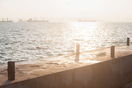 Concrete wall at the sea port.