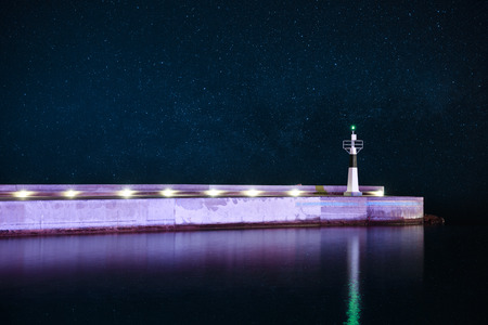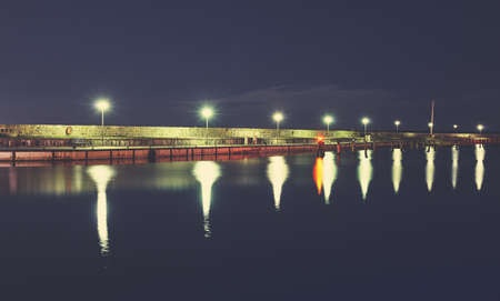 Pier at the port of Sassnitz at night, color toned picture, Germany.