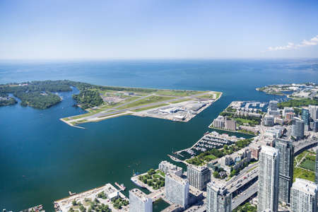 Toronto view from skyline on to local airport, downtown and lake