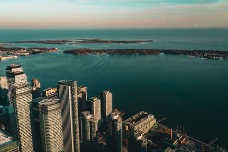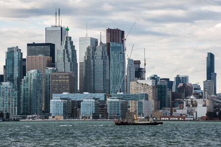 Scenic Toronto financial district skyline and modern architecture. View from Ontario lake.
