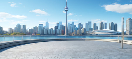 Downtown city view of Toronto Canada from Queens Quay and Lake Ontario
