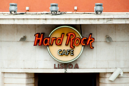 LISBON, PORTUGAL - June 3, 2016: Hard Rock Cafe chain of restaurants found in 74 countries