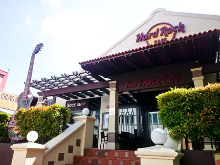 MELAKA, MALAYSIA - April 13, 2018 : View outside of Hard Rock Cafe Malacca located nearby Malacca River.