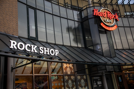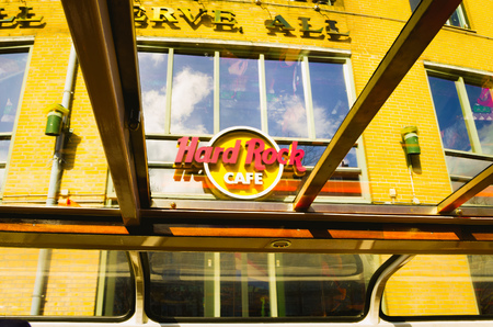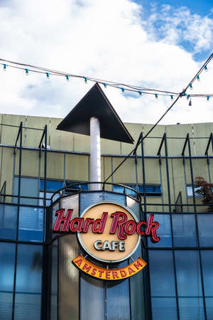 Amsterdam, Netherlands - September 9, 2018: Sign of the Hard Rock Cafe in Amsterdam, Netherlands