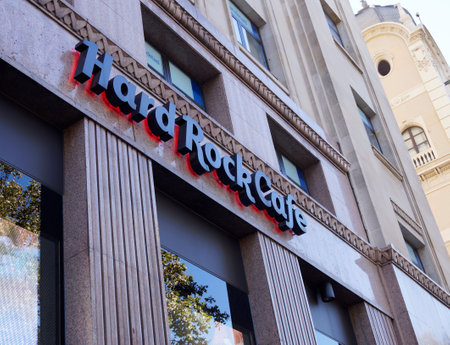 BARCELONA, SPAIN - OCTOBER 07, 2015: Famous Hard Rock Cafe at Catalonia Square in Barcelona, Spain