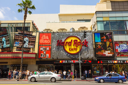 Los Angeles, CA, USA - may 2013: Crowded sidewalk in front of hard Rock Cafe in Hollywood