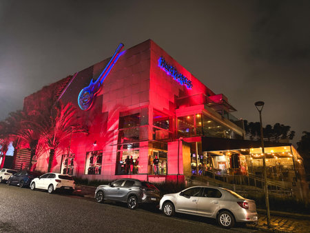 Curitiba PR Brazil. December 8, 2025. Hardrock cafe in Curitiba at night.