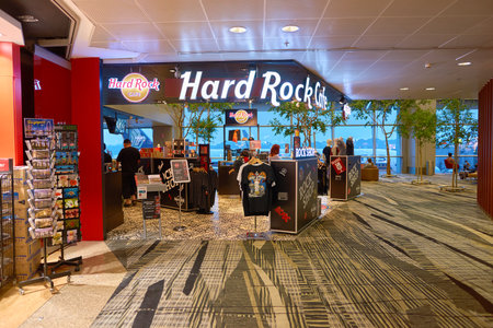 SINGAPORE - CIRCA NOVEMBER, 2015: Hard Rock Cafe in Singapore Changi Airport. Changi Airport is the primary civilian airport for Singapore and one of the largest transportation hubs in Southeast Asia.
