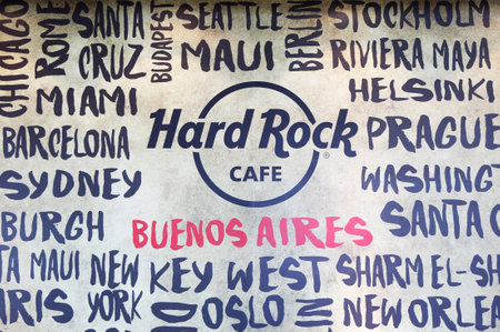 BUENOS AIRES,ARGENTINA -APRIL 1, 2015:Hard Rock Cafe at Jorge Newbery Airport in Buenos Aires.Hard Rock Cafe is a chain of theme restaurants founded in 1971 by Americans Isaac Tigrett and Peter Morton