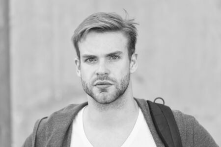 Depends upon your choice. student unshaven face stylish hairstyle. Bearded man casual style. portrait of male attractiveness. young guy gray background. unshaved macho man. fall male fashion