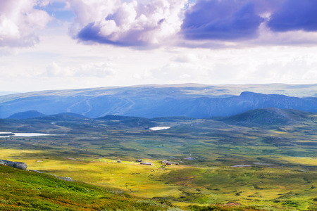 Magnificent summer landscape of the Hardangervidda mountain plateau and National park in Norway.