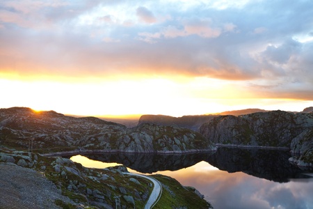 Lysevegen road running through summer norwegian mountains, located in Rogaland county. Beautiful landscape. Travel and tourism.