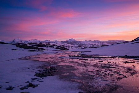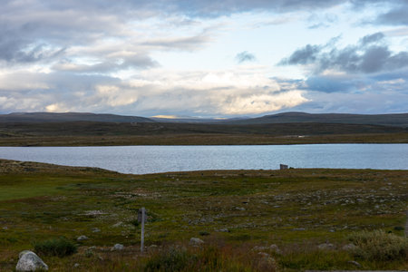 Sunset landscape in Hardangervidda, Europe highest mountainous plateau.