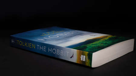 Galle, Sri Lanka - 04 07 2021: World famous novel book lay flat in the darkroom tabletop.