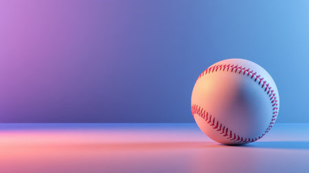 A vibrant baseball sits on a smooth surface, showcasing a colorful gradient background that highlights its textured surface and sporty design.