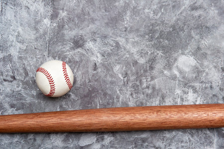 Grunge Baseball image with old used ball and dirty players mitt close up, copy space on background.