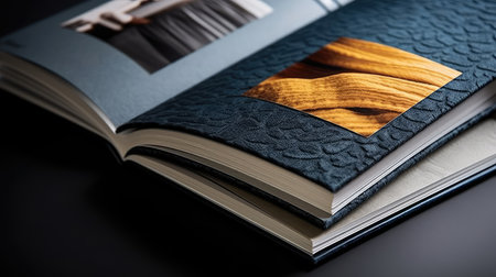 Close-up shot of blank pages in an open book, isolated on a dark matte background for a dramatic effect